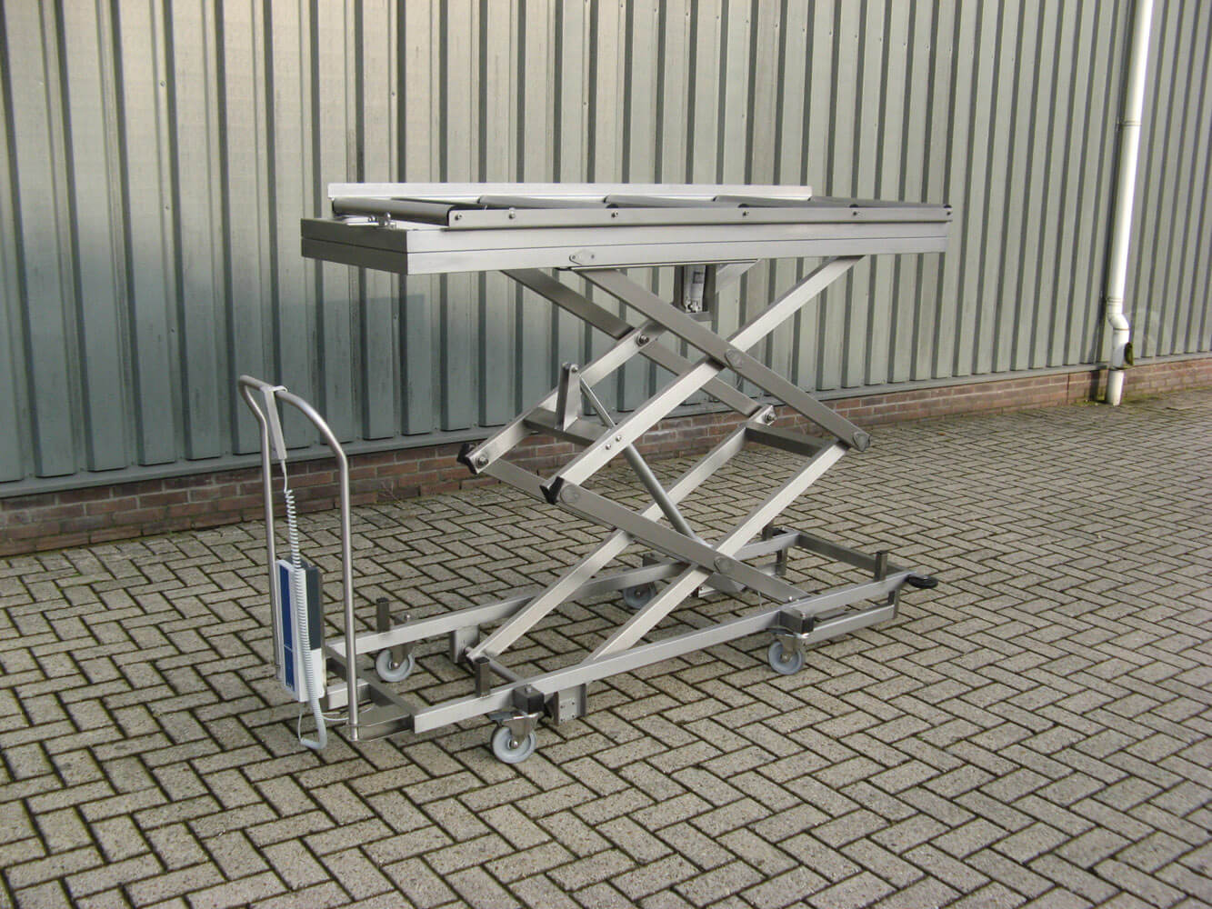 De uitvaartbranche is een bijzondere branche dat vraagt om bijzondere aandacht. Uitvaartondernemers hebben specifieke wensen waarvoor wij een reeks specifieke producten hebben. Denk hierbij aan rvs heftafels, aflegschalen, stellingrekken tbv kisten of aflegschalen, obductietafels, sectietafels of zelfs complete hefplateau’s voor ceremonies in een crematorium.